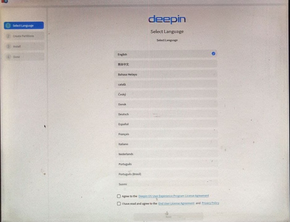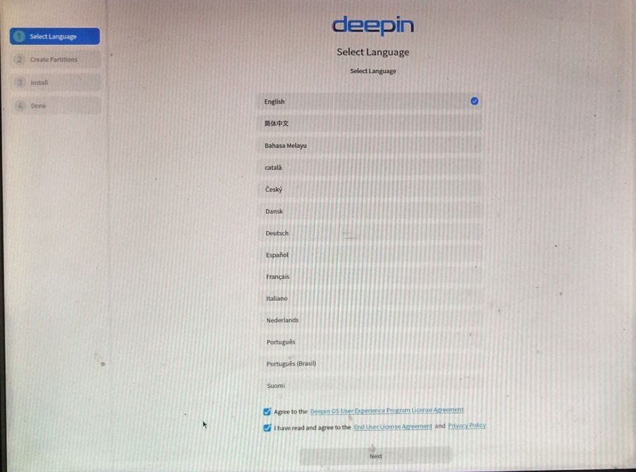 ভাষা সিলেক্ট করুন English, ভাষা সিলেক্ট করার পর নিচের দিকে বক্সে টিক দিন। টিক দেওয়ার পর নেক্সট ক্লিক করুন।