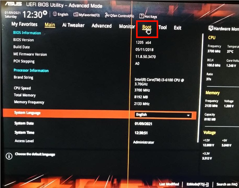 তারপর বায়োস মেনু থেকে boot টেব এ ক্লিক করুন।