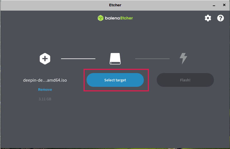 BalenaEtcher অপেন করুন। ক্লিক Flash from file