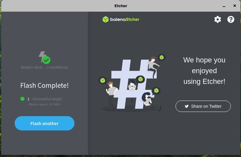 ফ্লাশিং শুরু হবে। শেষ হলে মেসেজ দেখতে পাবেন ক্লোজ করুন বেলেনাইচার। আপনার বুটেবল USB প্রস্তুত।