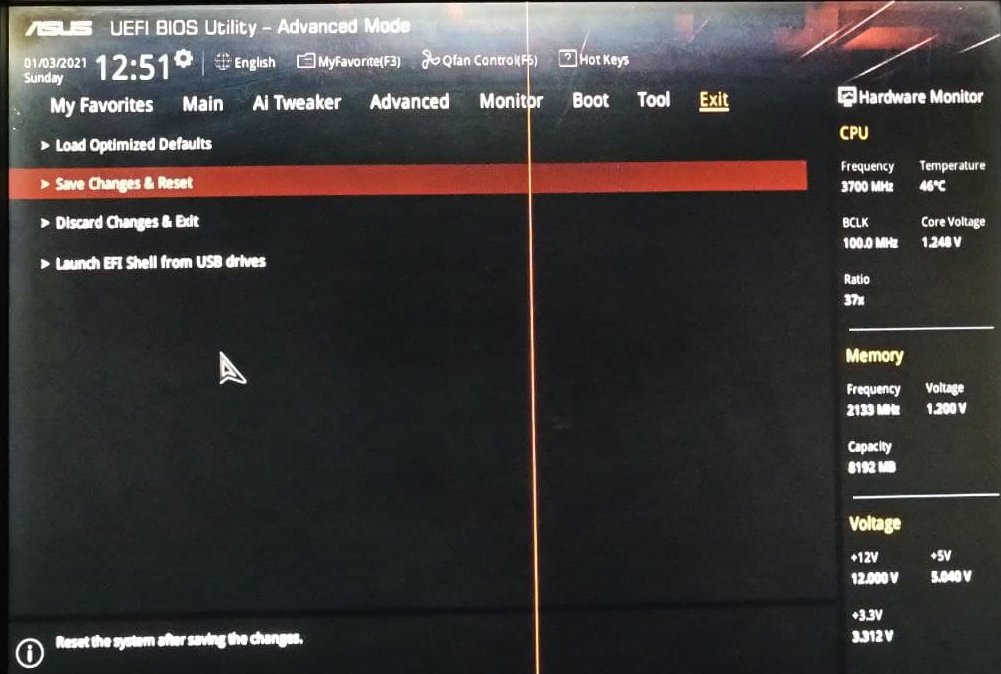 বুট প্রায়োরিটিস পেনড্রাইভ সেট করার পর বায়োস মেনু থেকে Exit টেব এ ক্লিক করুন, ক্লিক করার পর Save Changes & Reset ক্লিক। তারপর ওকে তে ক্লিক করলে পিসি পেনড্রাইভ থেকে বুট হবে ইনষ্টল প্রসেস আরম্ভ করার জন্যে।