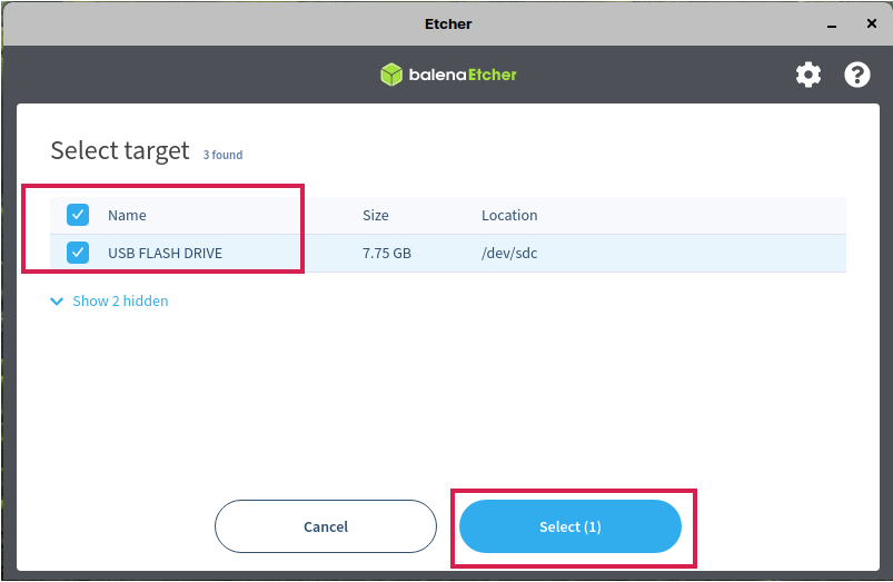 পেন ড্রাইভ কানেক্ট থাকলে সিলেক্ট টারগেট ক্লিক করলে নিচের ছবির মতো উইন্ডো আসলে টিকমার্ক দিন। তারপর ক্লিক করুন Select।