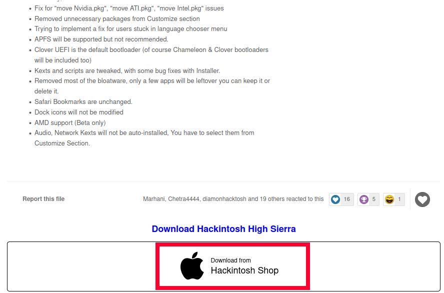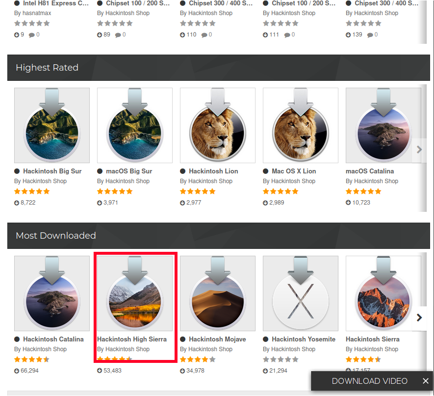 পেইজ স্ক্রল করে নিচের দিকে আসুন, ক্লিক করুন Hackintosh High Sierra