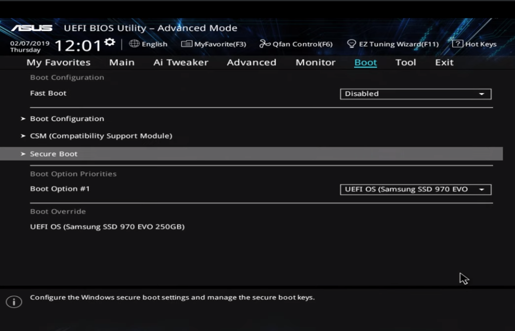 Boot Tab এর অন্তর্ভুক্ত ক্লিক Secure Boot
