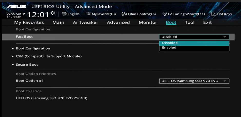 বায়োস মেনুতে ক্লিক Boot টেব তারপর সেখানে Fast Boot অপশন সিলেক্ট করুন Disabled