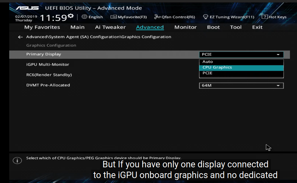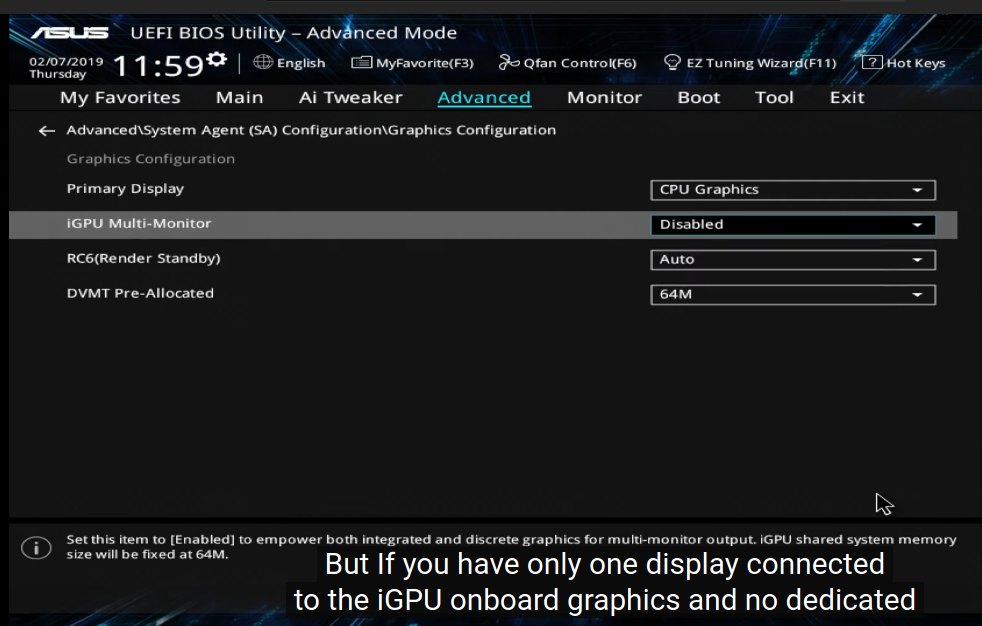 এবং সিলেক্ট করুনiGPU Multi-Monitor > Disabled
