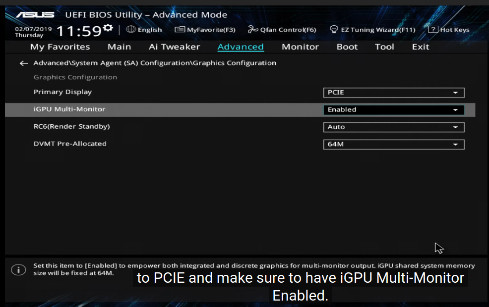 সিলেক্ট iGPU Multi-Monitor > Enabled