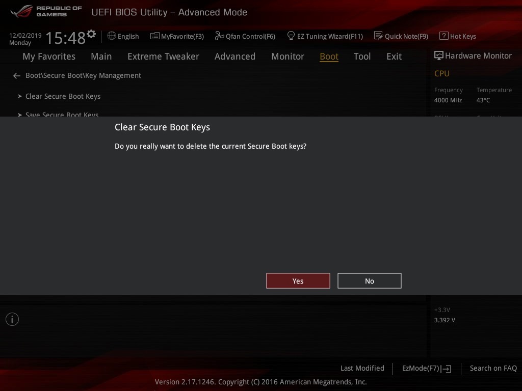 Secure Boot Disable করার জন্য ক্লিক Clear Secure Boot Keys
