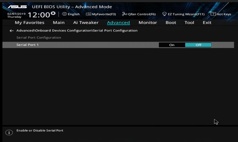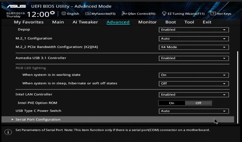 স্ক্রল করে নিচের দিকে এসে ক্লিক Serial Port Configuration