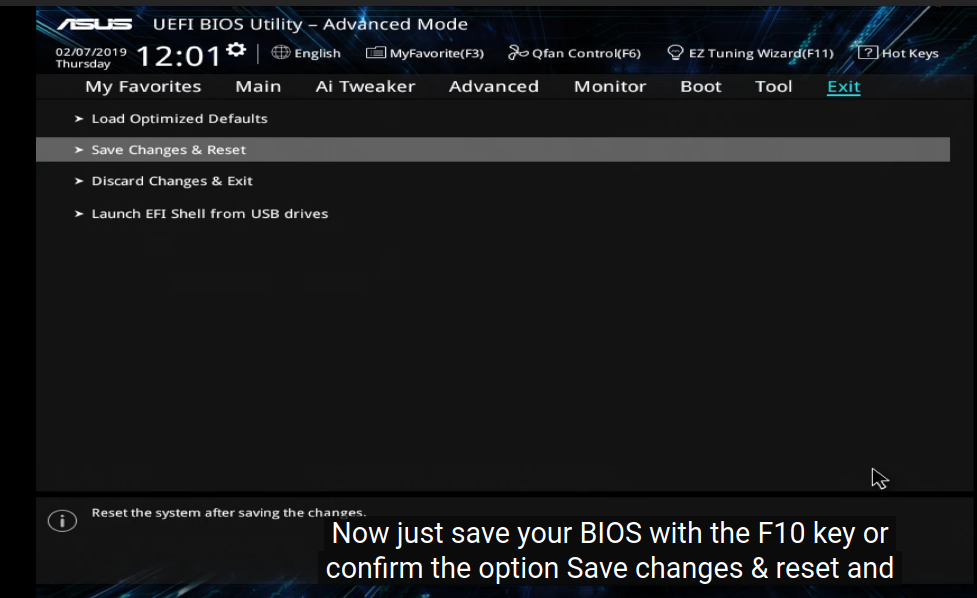 সবকিছু সেট করার পর বায়োস সেভ করার জন্য বায়োসের Exit tab এ ক্লিক করে Save Changes & Reset options এ ক্লিক করে বায়োস থেকে বের হয়ে আসুন। হ্যাকিন্টোষের জন্য বায়োস সেটআপ রেডি।