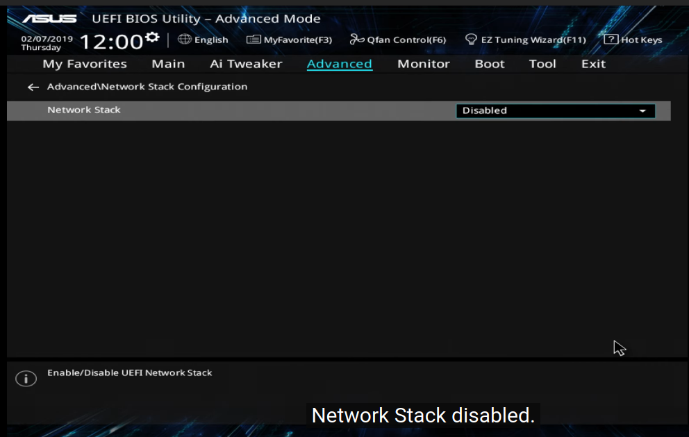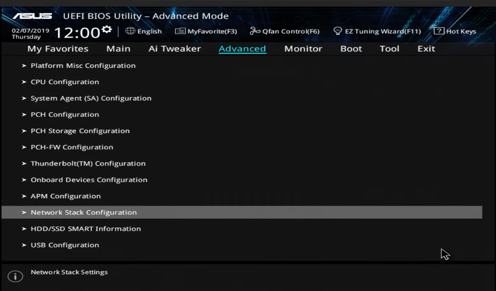 Advanced Tab এর অন্তর্ভুক্ত ক্লিক Network Stack Configuration