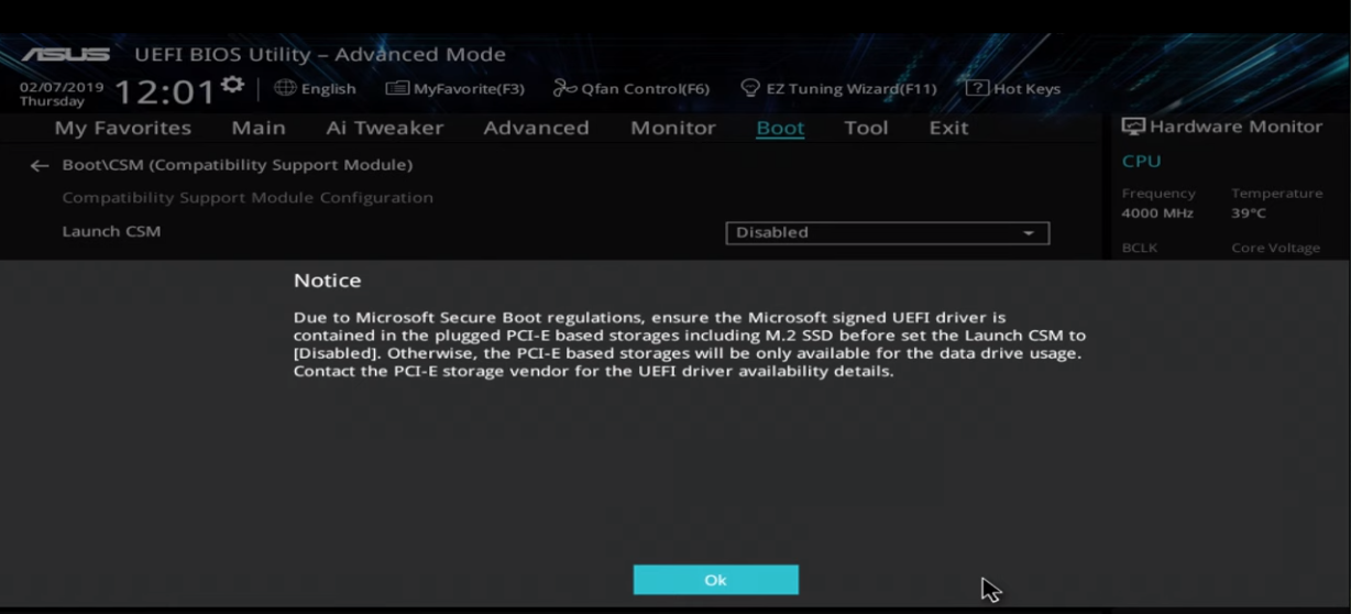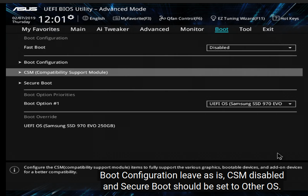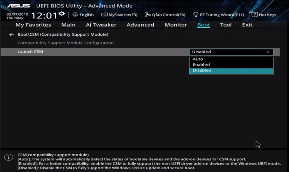 Boot Tab এর অন্তর্ভুক্ত ক্লিক CSM (Compatibility Support Module)