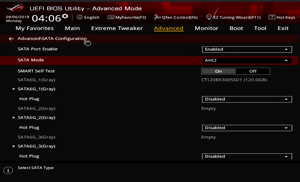 SATA Mode সিলেক্ট করুন AHCI যদি না থাকে।