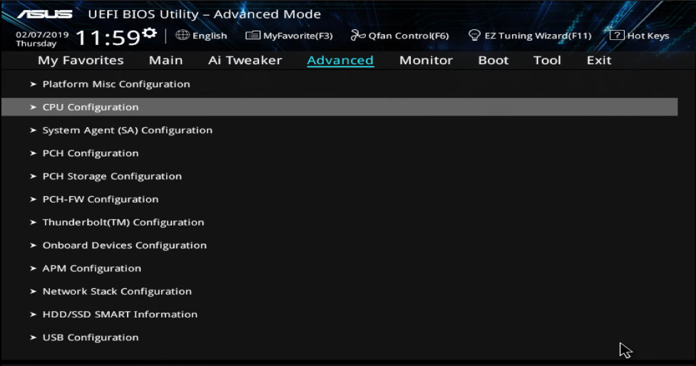 Advanced Tab এর অন্তর্ভুক্ত CPU Configuration এ ক্লিক করুন।