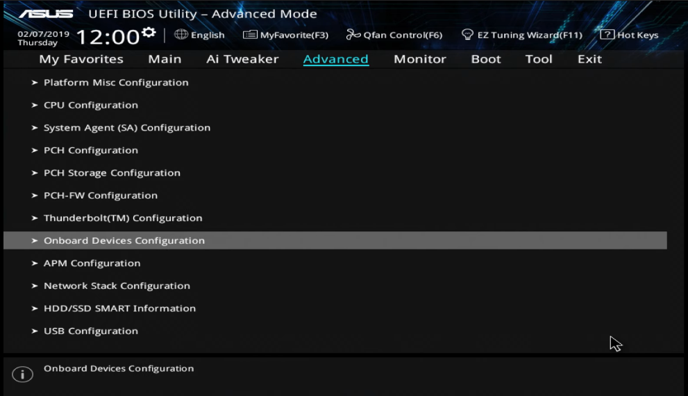 Advanced Tab এর অন্তর্ভুক্ত ক্লিক Onboard Devices Configuration