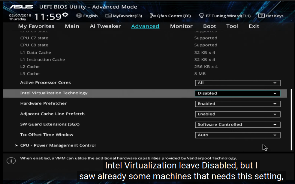 CPU Configuration সিলেক্ট করার পর স্ক্রল করে নিচের দিকে এসে Intel Virtualization Technoligy সেট করুন Disabled