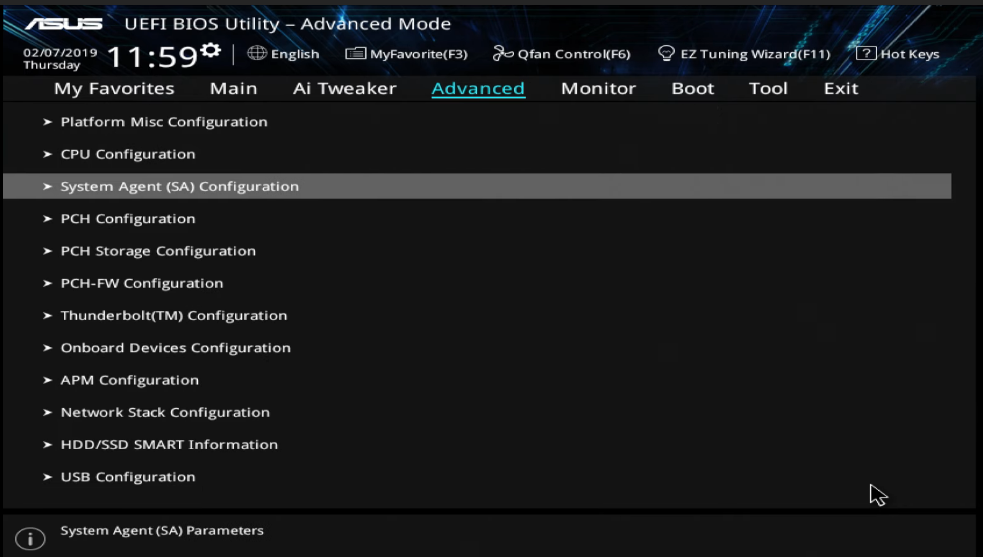 Advanced Tab এর অন্তর্ভুক্ত System Agent (AG) Configuration এ ক্লিক করুন।