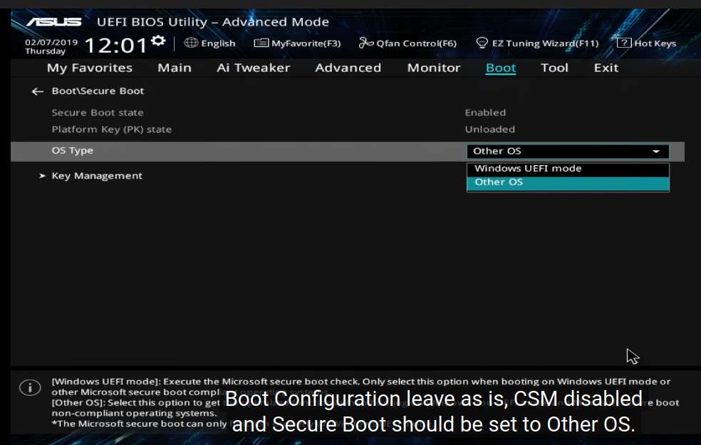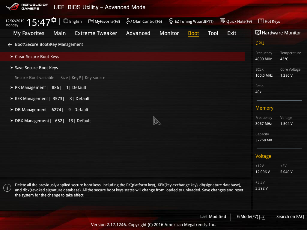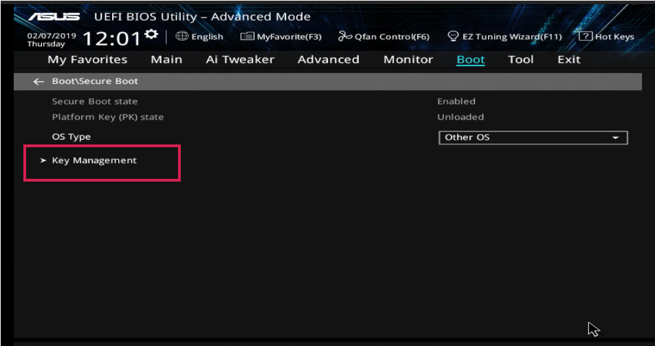 Boot Tab এর অন্তর্ভুক্ত ক্লিক Key Management