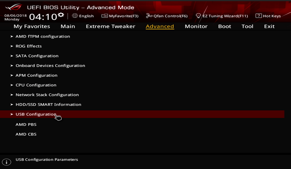 Advanced Tab এর অন্তর্ভুক্ত USB Configuration এ ক্লিক করুন।
