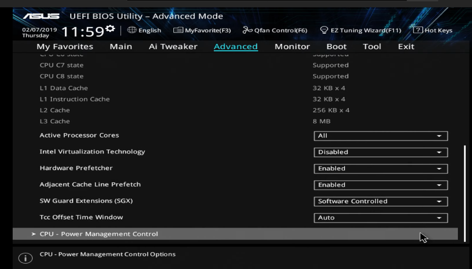 Advanced Tab এর অন্তর্ভুক্ত CPU Configuration এসে স্ক্রল করে নিচের দিকে ক্লিক করুন CPU-Power Management Control