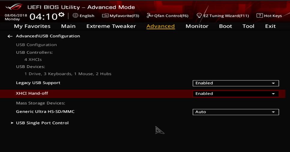 USB configuration এর অন্তর্ভুক্ত Legacy USB Support > Enabled