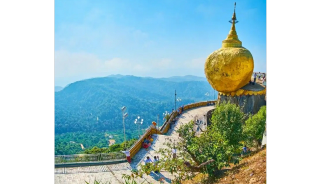 এই শিলাটি দেখলে মনে হয় সোনার সাথে আবৃত করা এবং এটি যে কোনও সেকেন্ডে পড়ে যাবে। কিন্তু বাস্তবে, এটি একই জায়গায় ২৫০০বছর ধরে বসে আছে! বোল্ডারটি তার উপরে নির্মিত প্যাগোডা সহ ৪৯ ফুট উঁচুতে বসে। কথিত আছে, বোল্ডারটি এর ভিতরে থাকা বুদ্ধের চুল ধরে। ফলে বোল্ডারটি স্থির হয়নি এবং যে কেউ এটিকে সরিয়ে ফেলতে পারে তবে প্রকৃতি এখনও এটিকে ফেলে দেয়নি। বলা হয়ে থাকে যে কেবল কোনও মহিলাই বোল্ডারটি সরাতে পারে। সুতরাং এর কারণে, মহিলাদের পাথর স্পর্শ করার অনুমতি নেই।