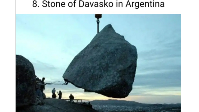 এই বিশাল পাথর মহাকর্ষের নীতির বিরুদ্ধে কাজ করে। ৩০০ টন ওজনের পাথরটি কিছুটা কাত হয়ে যাওয়ার আগে কয়েক হাজার বছর ধরে বিশাল পাথরের কিনারে বসে ছিল। স্থানীয়রা এটি পরীক্ষা করেছে - তারা নীচে একটি কাচের বোতল রাখল এবং এটি ফেটে যায়। ফেব্রুয়ারী ২৯, ১৯১৩ এ দাভাসকো পাথরটি নিচে পড়ে যায়। স্থানীয় জনগণের জন্য এটি ছিল সত্যিকারের ধাক্কা। ৯৫বছর পরে, তারা এটির একটি প্লাস্টিকের অনুলিপি রেখেছিল। এটির ওজন মাত্র ৯ টন। এগুলো ছাড়া ও বেশ কিছু রহস্যময় স্থান রয়েছে যেখানে ও মাধ্যাকর্ষণ শক্তি র বিপরীতে কাজ হতে দেখা যায়। যেমন ঃ সান্টা ক্রাযস, গলদেহ রক, স্পক হিল, কসমস এরিয়া -কানাডা ইত্যাদি।