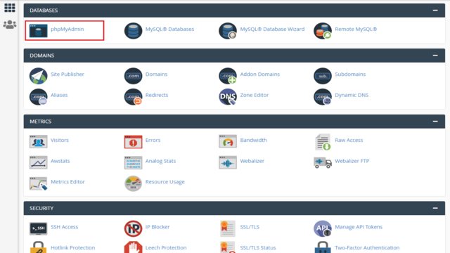 ২। DATABASES সেকশন থেকে phpMyAdmin এ ক্লিক করুন।