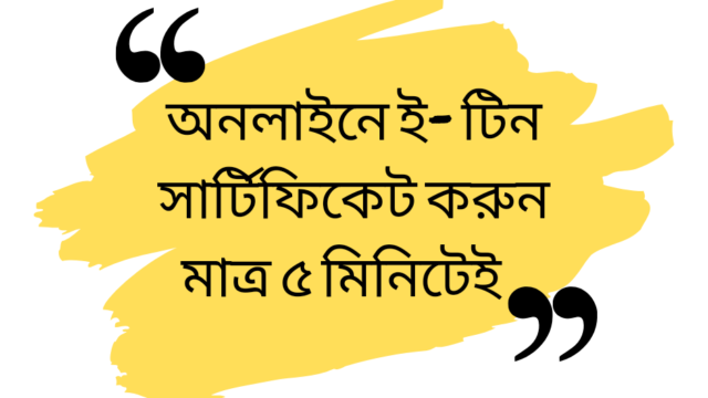 অনলাইনে ই- টিন রেজিষ্ট্রেশন বা টেক্সট আইডেন্টিফিকেশন নাম্বারের জন্য আবেদন করা যায় এটা অনেকেই হয়তোবা জানেন না। তবে, কিভাবে মাত্র পাঁচ মিনিটেই এই অনলাইন রেজিষ্ট্রেশনটি করে আপনি ই টিন সার্টিফিকেটটি হাতে পেতে পারেন সেটা হয়তোবা অজানাই রয়ে গেছে। তবে আজকে এই কনটেন্ট পড়ার পর আর অজানা থাকবে না। আপনার এই গুরুত্বপূর্ণ সার্টিফিকেটটি অন্য কারো মাধ্যমে না করিয়ে আপনি নিজেই ঘরে বসে কিভাবে মাত্র পাঁচ মিনিটেই আপনার টেক্সট আইডেন্টিফিকেশন নাম্বার সহ আপনার ই টিন নাম্বারটি পেতে পারেন সেটা নিয়েই আমার এই কনটেন্টটি লিখা। তাই কন্টেন্টি শুরু থেকে শেষ পর্যন্ত মনোযোগ সহকারে পড়ুন। তাহলেই সবকিছু বুঝতে পারবেন।