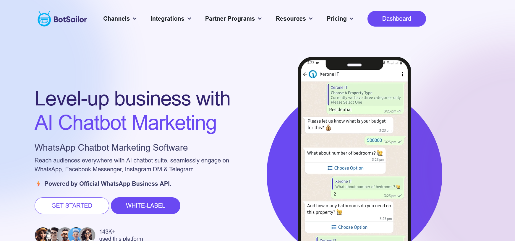 বটসেলার (BotSailor) হলো জেরন আইটির তৈরি একটি হোয়াইট লেবেল চ্যাটবট প্ল্যাটফর্ম যা বিশেষ করে WhatsApp, ফেসবুক মেসেঞ্জার, ইনস্টাগ্রাম এবং টেলিগ্রামের মতো জনপ্রিয় প্ল্যাটফর্মে চ্যাটবট সেবা প্রদান করে। এটি হোয়াইট লেবেল মডেলে পরিচালনা করা সম্ভব, ফলে আপনি নিজের ব্র্যান্ডে এটি সরবরাহ করতে পারেন এবং আয় শুরু করতে পারেন। বটসেলার কীভাবে আপনাকে ব্যবসা শুরু করতে সাহায্য করতে পারে, তা নিচে তুলে ধরা হলো: