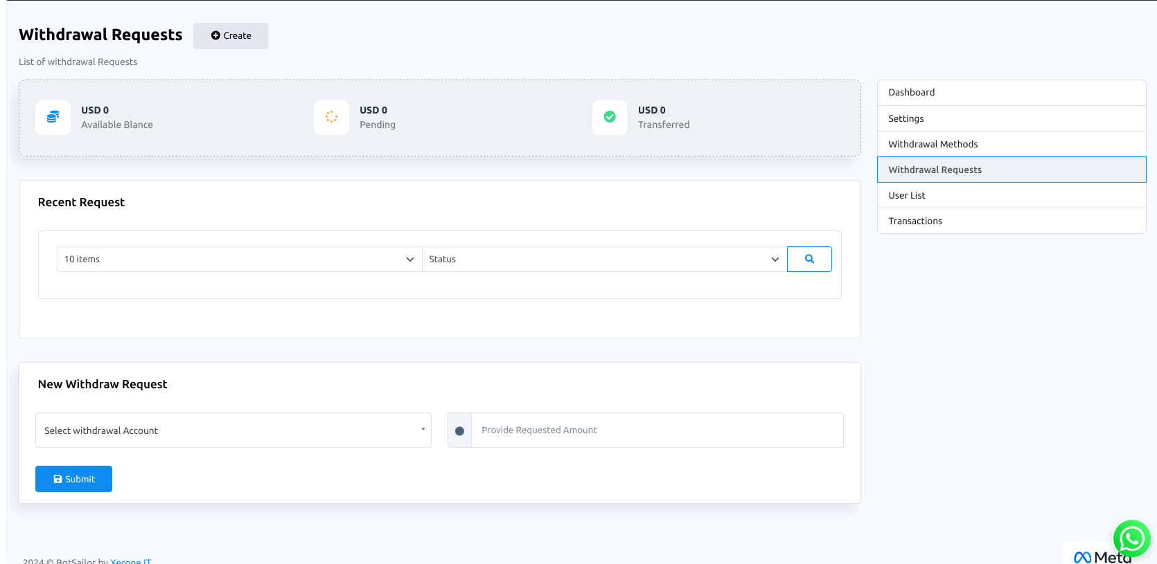BotSailor অ্যাফিলিয়েট থেকে কমিশন উত্তোলন