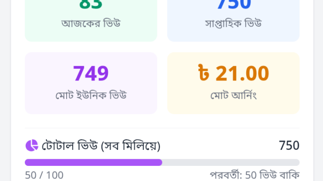মনে রাখবেন: প্রতিদিন একই ব্যক্তি একই টিউনে একাধিকবার ভিজিট করলেও ভিউ গণনা করা হবে মাত্র ১ বার। এটি সম্পূর্ণ ইউনিক ভিউ ভিত্তিক সিস্টেম।