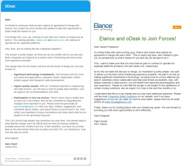 ওপর দিকে যদি ইল্যান্স এর কথা চিন্তা করি, তবে ইল্যান্স এ এই সব সমস্যা তুলনা মূলক ভাবে অনেক কম। আর তাই যদি ওডেস্ক ও ইল্যান্স এক হয়ে যায় তবে,