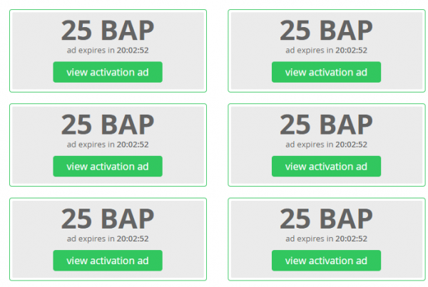 আপনার website এর জন্য ৫০ ভিউ যা ৭ দিনের মধ্যে দেয়া হবে।আর আপনি ৩১০০ BAP এর add ৩-৪ দিনের মধ্যে পাবেন।এভাবে আপনি যতো ইনভেস্ত করবেন তত লাভ পাবেন।এক্তু অপেক্ষা করতে হবে তাহলে সফলতা আসবে।যারা বেশি ইনভেস্ত করে তারা কেমন অ্যাড পাই দেখেন।