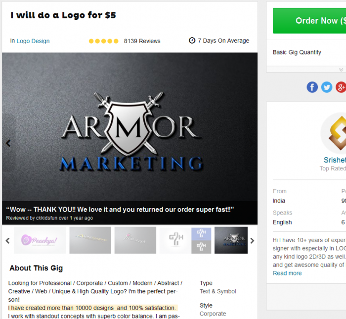 আসলে ৫ ডলার কে ৫০০ ডলার বানান কোন ব্যাপার না। উদাহরন হিসাবে লোগো তৈরির এই গিগ টা দেখেন।