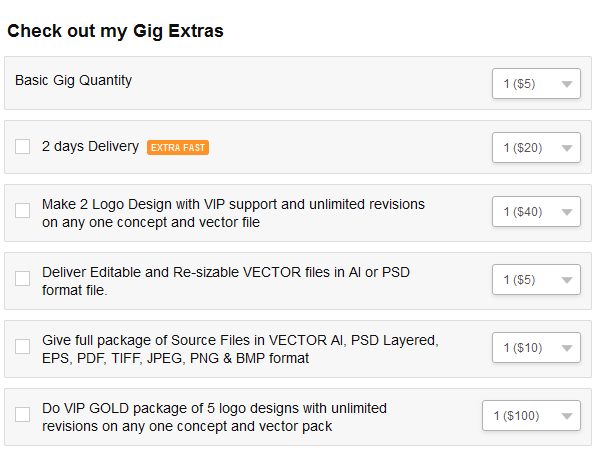 আবার যে এটা সুধু ৫ ডলার এ সেল হয়েছে তা না। নিচে দেখুন এক্সট্রা গিগ যোগ করা আছে। ২ দিন এর মাঝে ডেলিভারি দেবার জন্য ২০ ডলার। মানে টোটাল ২৫ ডলার। এইভাবে একটা গিগ থেকে আপনার ইচ্ছা মত ডলার পেতে পারেন। তবে প্রথম ১০ তা গিগ সেল হবার পরেই আপনি এক্সট্রা গিগ যোগ করতে পারবেন।