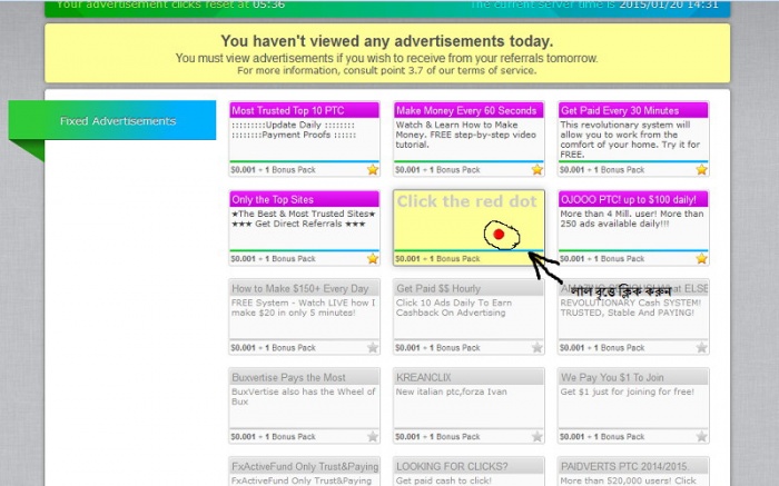 ** আপনাকে প্রতিদিন অবশ্যই হলুদ Fixed advertisement গুলো ক্লিক করতে হবে। দৈনিক ৪ টা করে এই ধরনের এ্যাড পাবেন।আগে এই ধরনের এ্যাড ক্লিক করে নিয়ে তারপর অন্য এ্যাড ক্লিক করবেন। তা না হলে রেফারালের ইনকাম পাবেন না।