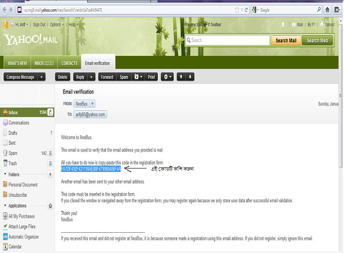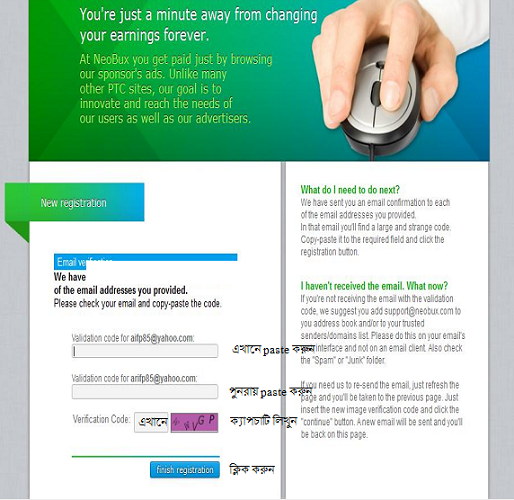 continue বাটনে চাপার পর আপনার ইমেল এড্রেসে একটি নিওবক্স থেকে একটি মেইল যাবে