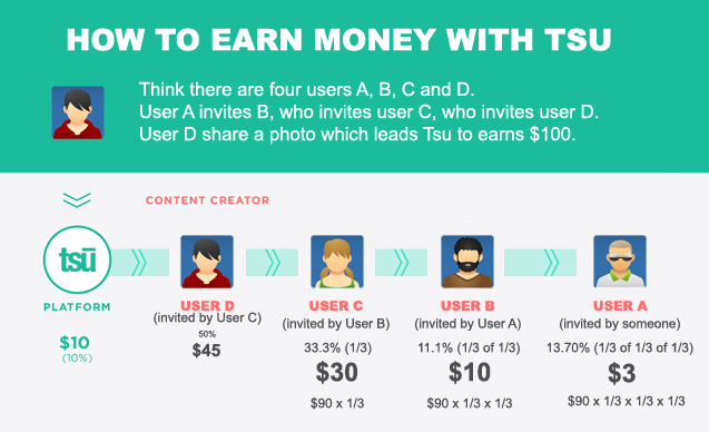 . Tsu তাদের প্রফিটের ৯০% ইউজারদের সাথে শেয়ার করবে। আপনার প্রতিদিনের স্ট্যাটাস থেকেই আপনি আয় করতে পারবেন।