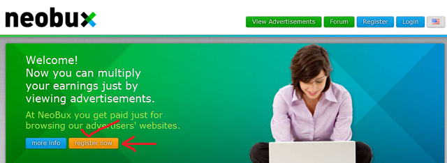 ১। প্রথমে আপনাকে এই সাইটে রেজিস্ট্রেষন করতে হবে। রেজিস্ট্রেষণ করতে register now লিঙ্কে ক্লিক করুন । Neobux