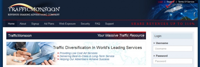 Trafficmonsoon সাইটি ও অনলাইনে খুবি বিশ্বস্ত একটি সাইট এখান থেকে আপনি খুব সহজেই ইনকাম করতে পারবেন । Trafficmonsoon আপনাকে payza,paypal মাধ্যমে পেমেন্ট করবে। আপনার একাউন্টে ২ ডলার হলেই আপনি withdraw করতে পারবেন।