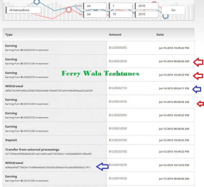 ৬। আপনি এখানে কত বিট কয়েন ইনভেস্ট করেছেন, প্রতদিনে কত লাভ করেছেন কিংবা Withdrawal করেছেন তার সবই History অংশে ক্লিক করলেই জানতে পারবেন।