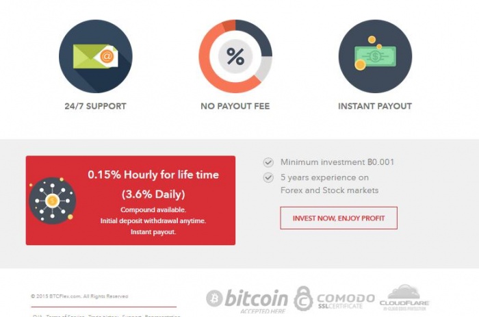 এই সাইটটি প্রতি ঘন্টাতে ০.১৫% রেটে প্রতিদিনে ৩.৬% পর্যন্ত প্রফিট দিয়ে থাকে। যদিও অন্য সাইট হতে এর রেট অত্যন্ত বেশী যা ভাবনা সৃষ্টি করে। যদিও এখানো সাইটটি সম্পর্কে স্ক্যাম পাওয়া যায়নি। এখানে মিনিমাম ฿0.001 ইনভেস্টমেন্ট করতে পারবেন। আরেকটি ব্যাপার এখানের ডিপোজিতের লাভ উত্তোলন করতে হলে আপনাকে ডিপোজিতের সম পরিমান বিটিসি অর্জন করতে হবে।