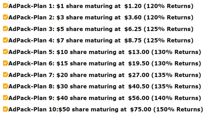আপনি যদি 50$ দিয়ে 1 টি প্যাক কিনেন সুদাসল আসবে: 75$ (150% Returns)
