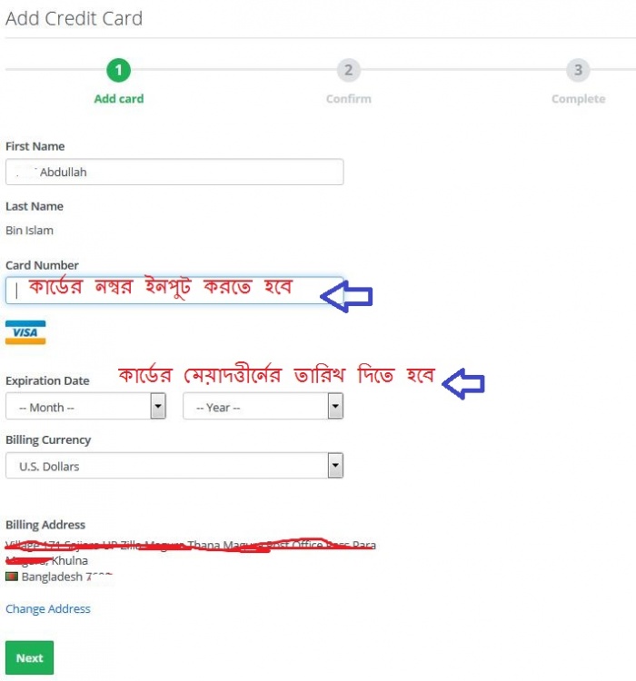 ২। এবার ডান পাশের প্যানেল হইতে Add a credit Card অপশনে ক্লিক করুন