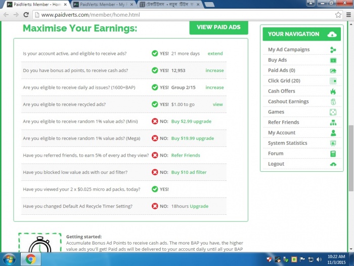 আমরা যারা আগে থেকেই পেইডভার্টস ব্যবহার করি তারা জানি যে পেইডভার্টস-এ আয় করার মুল চাবিকাঠি হলো ব্যাপ(বোনাস এড পয়েন্ট)। যার ব্যাপ যত বেশি সে তত বেশি দামী এড পাবে। আর 1BAP= $0.0005। এখানে প্রথম অবস্থায় $1 আয় করতে প্রায় ১৫ দিনের বেশি সময় লেগে যায়। যদি আপনি $5 আয় করতে চান তাহলে আপনাকে কমপক্ষে 45 দিন খাটতে হবে। আর এটাই নিয়ম। কারণ অনলাইনে আয় করতে গেলে আপনাকে অবশ্যই কঠোর পরিশ্রম করতে হবে আর ধৈর্য ধারণ করতে হবে।