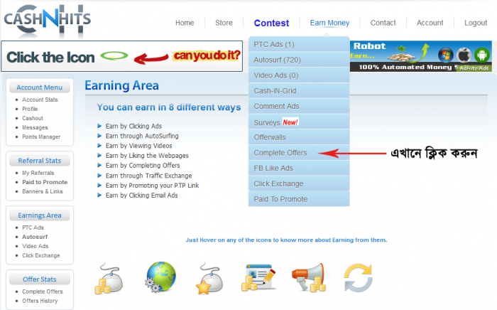 Earn Money Option টিতে ক্লিক করার পর Complete Offers Option টিতে ক্লিক করুন
