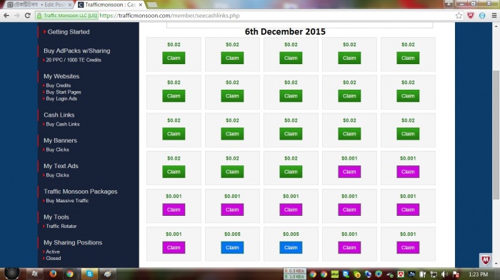 গত বৃহস্প্রতিবার মানে ডিসেম্বারের ৩ তারিখ থেকে Trafficmon-soon এ প্রচুর প্রচুর পরিমান Cashlinks দিচ্ছে। সবসময়ই Cashlinks দেয় কিন্তু আজ 4 দিন অনেক বেশি দিচ্ছে। প্রতিটি Cashlinks এর মূল্য 0.02$ নিচের ছবিতে দেখুন আজকের Cashlinks গুলো।