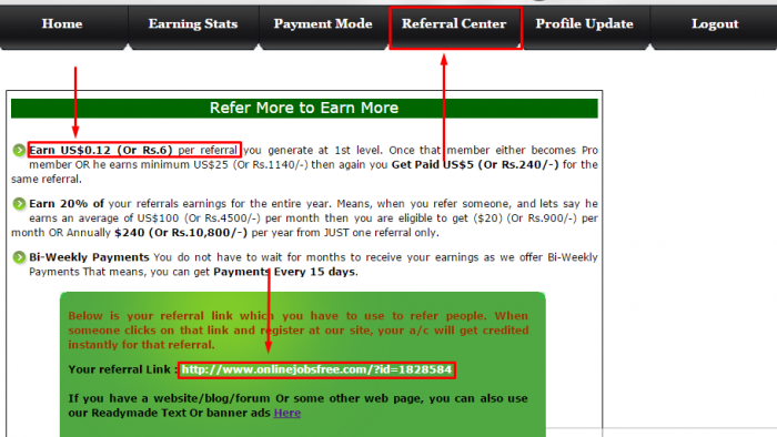 এরা প্রত্যেক চার(৪) Referral এ ০.১২$ ডলার দেয়। Site name: Online Jobs Free