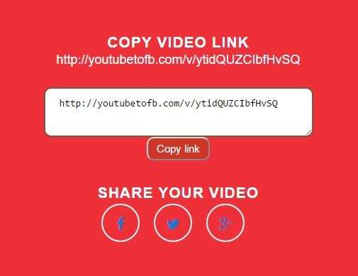 কনভার্ট বক্সে আপনার ভিডিও লিঙ্ক দিন। Youtube to Fb একটি লিঙ্ক জেনারেট করে দিবে সেটি কপি করে ফেসবুকে টিউন করুন।